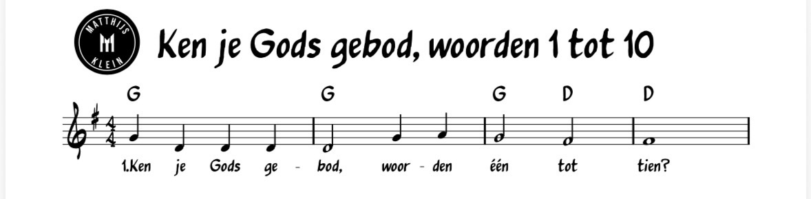 Leadsheet bij het lied Ken je Gods gebod, woorden 1 tot 10.