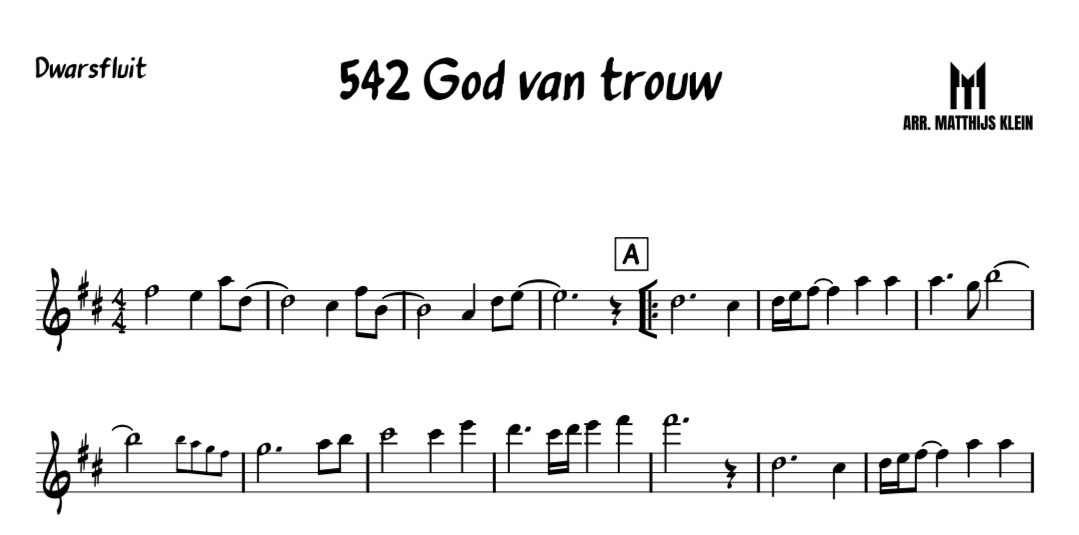 Bovenstem / tegenstem bij opwekking 542 God van trouw. Dit is een arrangement voor (dwars-)fluit en past goed bij de originele partij uit de opwekkingsbundel