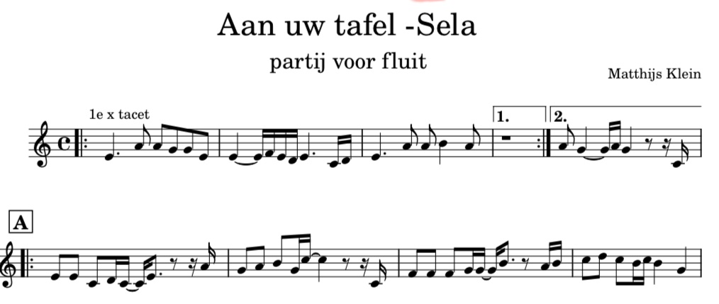 Bovenstem voor dwarsfluit bij het lied Aan Uw tafel van Sela